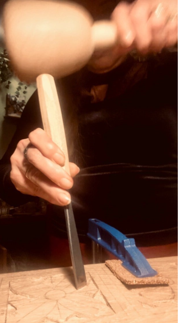 In 2025 ben ik begonnen met een cursus klassiek (middeleeuws) houtsnijden. Ik stam uit een lange lijn houtsnijders en was benieuwd of het ook in míjn DNA zat. Inmiddels ben ik bitten by the bug, ofwel gegrepen door de guts. Want hoe mooi is het als je kleibordkunstenaar bent en je kunt je eigen, bijpassende lijsten snijden?